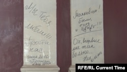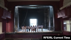 Здесь нет декораций, сцена наполовину разрушена. Зрительный зал, кресла и даже пол уже разобрали на дрова. Вместо любителей театра сегодня в зале горят десятки свечей. Внутри на стенах, актеры оставили прощальные надписи.